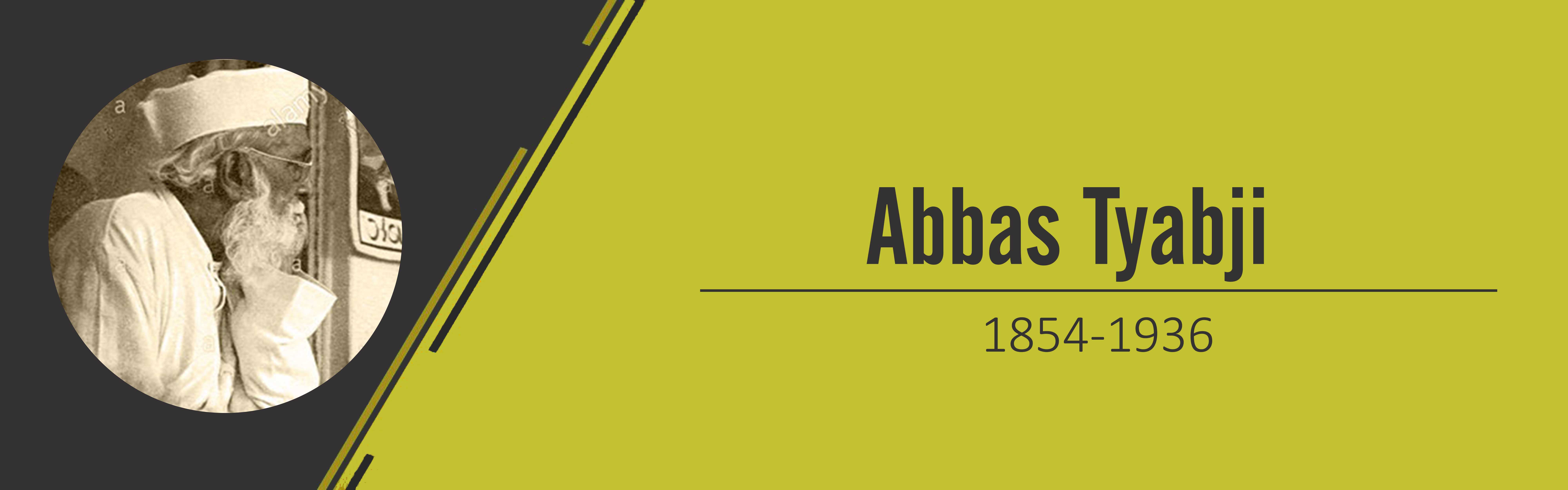 ഗുജറാത്തിലെ ബറോഡയില്, സമ്പന്ന മുസ്ലിം കുടുംബമായ സുലൈമാനി ബൊഹ്റ കുടുംബത്തില് 1854 ഫെബ്രുവരി ഒന്നിനാണ് അബ്ബാസ് ത്വയ്യിബ്ജി ജനിച്ചത്. രാജകീയമായി ജീവിച്ച അദ്ദേഹം, ഇംഗ്ലണ്ടിലാണ് പഠിച്ചത്. പതിനൊന്നു വര്ഷം അവിടെ താമസിച്ചു. വസ്ത്രധാരണത്തിലും ആചാരമര്യാദകളിലും ഒരു തികഞ്ഞ ഇംഗ്ലീഷുകാരനായി മാറിയിരുന്നു. ആ സ്വാധീനത്താല് തന്റെ മക്കളെയും ഇംഗ്ലണ്ടിലയച്ചാണ് ത്വയ്യിബ്ജി പഠിപ്പിച്ചത്. ഇന്ത്യയില് തിരിച്ചെത്തിയ അദ്ദേഹം ഏറ്റവും ഉയര്ന്ന പദവികളില് നിയമിതനായി. ഒരു വക്കീലായിട്ടാണ് സര്വീസ് തുടങ്ങിയത്. ബറോഡ ഹൈക്കോടതിയുടെ ചീഫ് ജസ്റ്റിസ് സ്ഥാനം പോലും അലങ്കരിച്ചു കൊണ്ടാണ് അദ്ദേഹം വിരമിക്കുന്നത്.